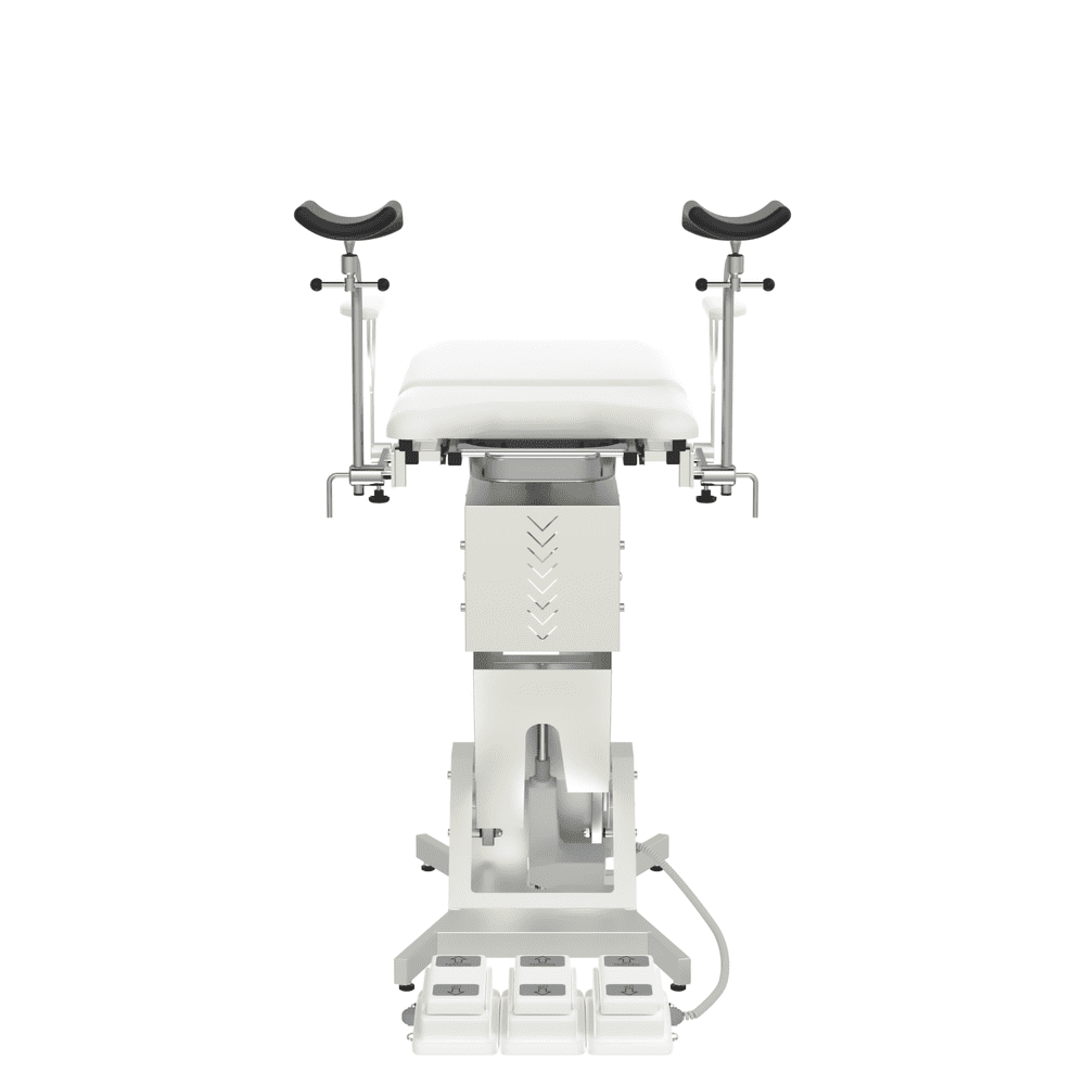 Подколенные упоры, регулируемые по высоте и углу наклона, выполнены из интегрированного пенополиуретана, эргономичные по форме, легко обрабатываются санитарными растворами, не требуют дополнительных чехлов.